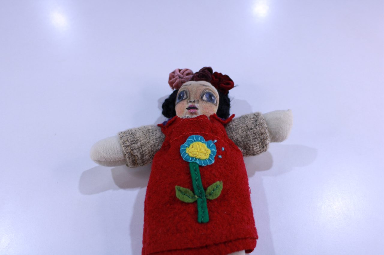 Fabricado por artesana de WICHUQUEN Región del maúle chile, muñequita hecha a mano y con materiales reciclados. Su relleno es de lana de oveja y su vestido rojo es de tela llamada Ravena, chaleco es de lana. Su cabello es de lana color negro y su cintillo se componen de tres flores de terciopelo y su carita es pintada con pintura acrílica. Esta muñeca sirve para adornar tu hogar o para niñitas .